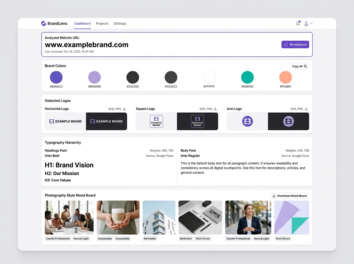 La mayoría de las empresas tienen guías de marca que nadie consulta antes de publicar. Post laboratory elimina ese problema en su raíz. Nuestro motor de análisis con navegador headless, visión artificial y análisis DOM extrae tu identidad directamente de tu web: logos en todos sus formatos, paletas de color exactas, jerarquía tipográfica y estilo visual. El resultado es un Brand Kit vivo que se aplica automáticamente en cada pieza que generes.